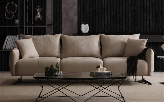 Koltuk takımının metal konstrüksiyon üzerine oturtulması, gizli ayak tasarımı ve yerden yüksek